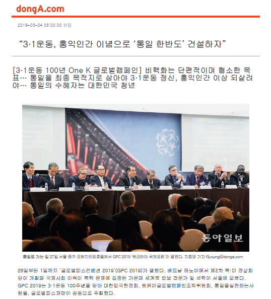 “3·1운동, 홍익인간 이념으로 ‘통일 한반도’ 건설하자”